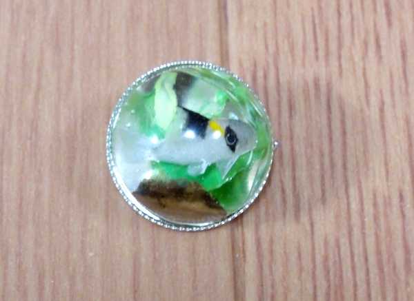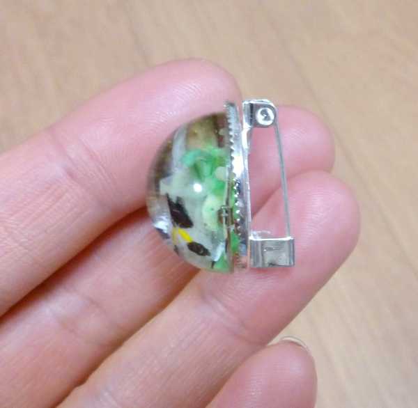 ピンが付いてる台座に半球ドームのレジンを乗せました。