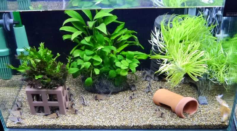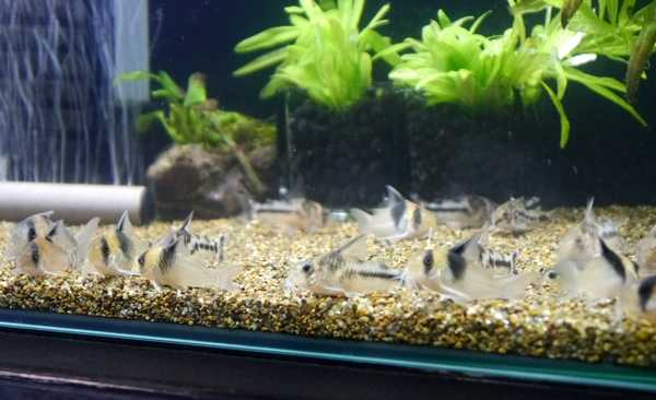 掃除の後に水槽の前面にコリが集まったので
