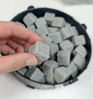 水を含ませてもリングろ材の半分の重さ。