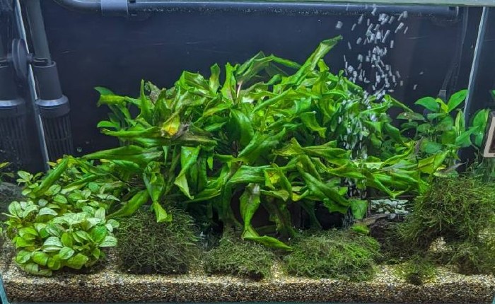 底砂の汚れは少ないけど水草に茶コケが増えているかな。