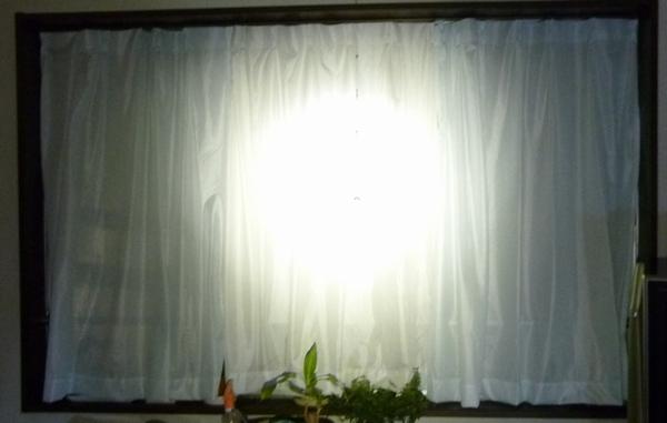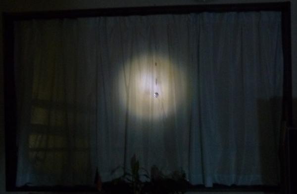 部屋の明かりを消して窓に向ってライトを当ててみた。