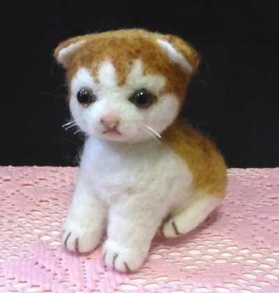 あらら~羊毛ねこちゃん、今にも泣きだしそうな哀しそうな顔(´д`|||)